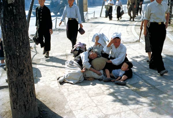 Refugees on a street in Pusan, South Korea, in early June 1951. Millions of South Koreans were displaced from their ...