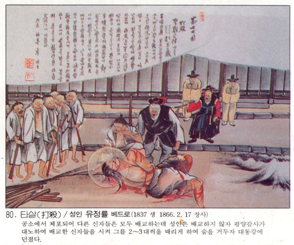 Çѱ¹ õÁÖ±³È¸ÀÇ 103¸íÀÇ ¼ºÀÎÁß ÇÑ»ç¶÷.À¯Á¤·üÀº Æò³² ´ëµ¿±º À²¸®¸é ´äÇö¸®(ÓÌúÖ×ì, ÀÏ¸í ³íÀç)¿¡¼­ ž ÀÏÂïÀÌ ºÎ¸ð¸¦ ¿©Àǰí ¤½ÅÀ» ¿«¾î ÆÈ¸ç ¾î·Á¿î »ýȰÀ» ÇÏ¿´´Ù. 1864³â°æ ±³¸®¸¦ ¹è¿ì°í ¼­¿ï·Î ¿Ã¶ó¿Í Àå ½Ã¹Ç¿Â(º£¸£³ú) ÁÖ±³¿¡°Ô ¼¼·Ê¸¦ ¹Þ°í °íÇâÀ¸·Î µ¹¾Æ¿Â µÚ Áö³­³¯ÀÇ À߸øÀ» ´µ¿ìÄ¡¸ç ±Ø±âÇϰí Àγ»ÇÏ´Â ...