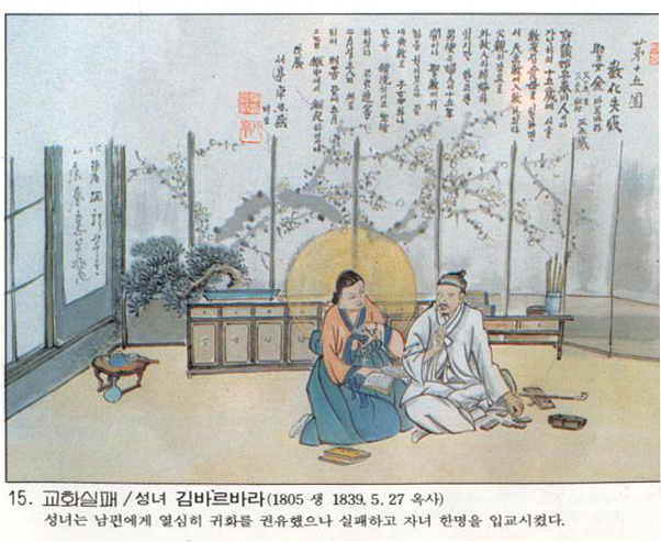 | Çѱ¹ õÁÖ±³È¸ÀÇ 103¸íÀÇ ¼ºÀÎÁß ÇÑ»ç¶÷.°úºÎ°¡ µÈ µÚ ÀÔ±³ÇÏ¿© ¿½ÉÇÑ ½Å¾Ó »ýȰ·Î Ä£Á¤ ½Ä±¸µéÀ» ÀÔ±³½ÃŲ ±è ·Î»ç´Â 1839³â 1¿ù 16ÀÏ ±ÇµæÀÎ(ÏíÔðìÒ) µî°ú ÇÔ²² üÆ÷µÇ¾ú´Ù. Æ÷û°ú ÇüÁ¶¿¡¼ ½Å¹®À» ¹ÞÀ» ¶§ ¡°ÇÏ´À´ÔÀº ½ÅÀθ¸¹°(ãêìÑØ¿Úª)ÀÇ Å« ÁÖÀÎÀ̽öó ¹è¹ÝÇÒ ¼ö ¾ø½À´Ï´Ù." Çϸç ÀÚ½ÅÀÇ ¶æÀ» ºÐ¸íÈ÷ ¹àÈ÷°í, ¿©·¯ ...