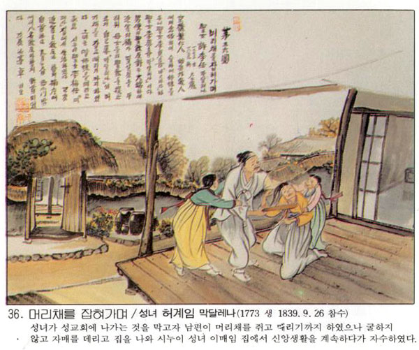| Çѱ¹ õÁÖ±³È¸ÀÇ 103¸íÀÇ ¼ºÀÎÁß ÇÑ»ç¶÷.°æ±âµµ ¿ëÀÎ(éÌìÒ)¿¡¼ ÅÂ¾î³ Çã°èÀÓÀº ½Ã´©ÀÌ À̸ÅÀÓ(ì°ØÞìò)À» ÅëÇÏ¿© õÁÖ±³¸¦ ¾Ë°Ô µÇ¾î ÀÌÁ¤Èñ(ì°ïöýì)¿Í ¿µÈñ(çÈýì) µÎ µþ°ú ÇÔ²² ÀÔ±³ÇÏ¿´´Ù. 1839³â 3¿ù, ³²¸íÇõ(ÑõÙ¥úÓ)°ú À̱¤Çå(ì°ÎÃúÌ)ÀÇ ¾î¸° ÀÚ³àµéÀÌ È¤Çü°ú °í¹®¿¡µµ ±¼ÇÏÁö ¾Ê°í ½Å¾ÓÀ» ÁöÄ×´Ù´Â À̾߱⸦ ÀüÇØ µè°í ...